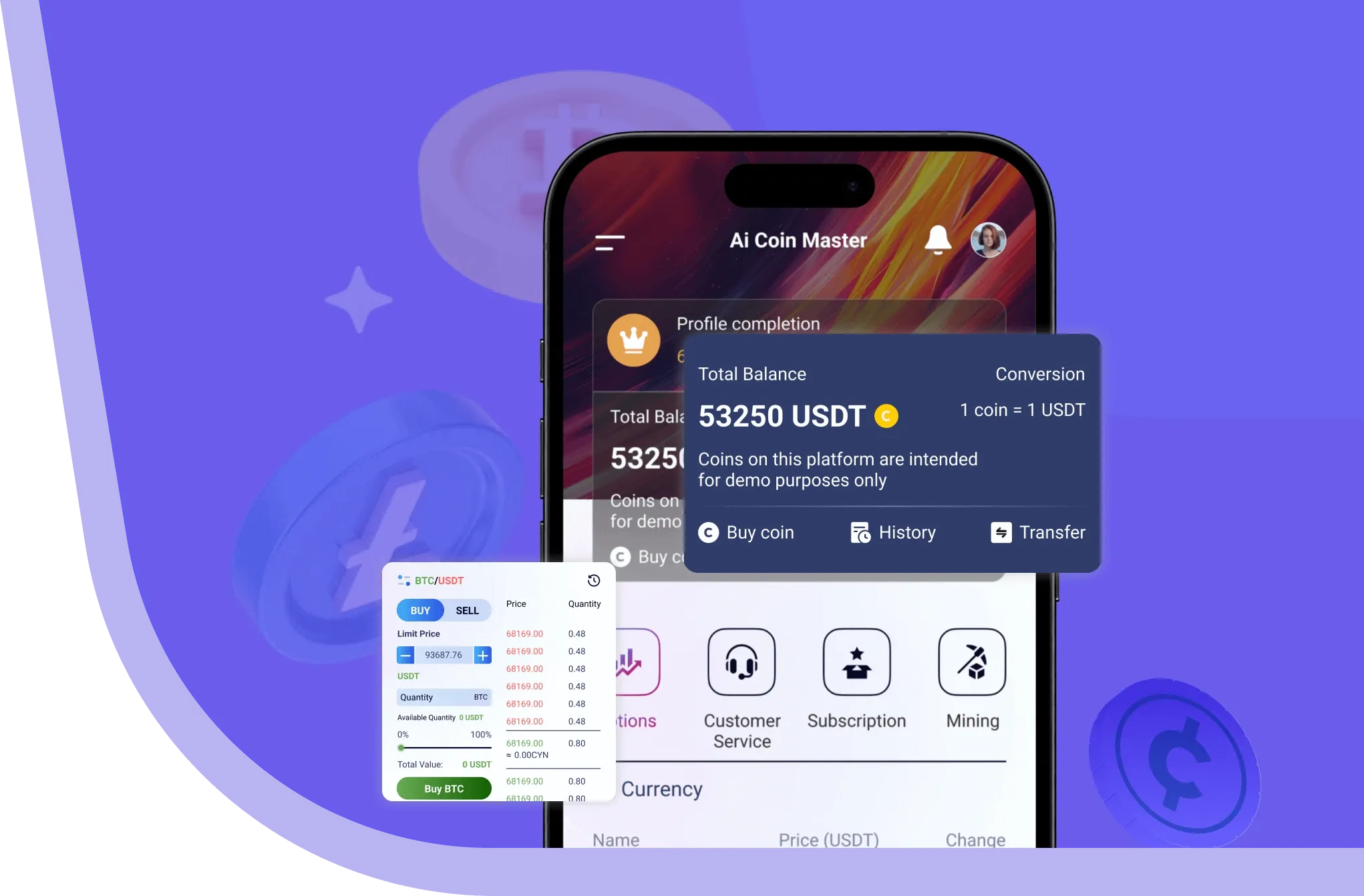 Buy, sell, and hold the most popular cryptocurrencies like Bitcoin, Ethereum, USDT, and hundreds more with ease. Whether you're a beginner or an experienced trader, our platform is designed to provide a seamless trading experience. Instant Trading Practice to view the Transactions and the History of Trading in Real-time.